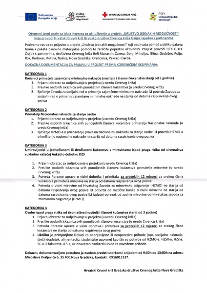Gradsko društvo Crvenog križa Nova Gradiška kao partner Gradskom društvu Crvenog križa Osijek započeo je provedbu projekta pod nazivom „Društvo jednakih mogućnosti“.